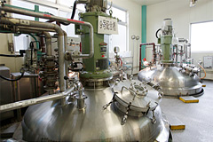 細かく管理規定されたフローに則り各原料を秤量し仕込んでいきます。原料投入の順番や方法にはノウハウがあり、製品の完成度のみならず時短によるコストダウンの要素にも関係しています。